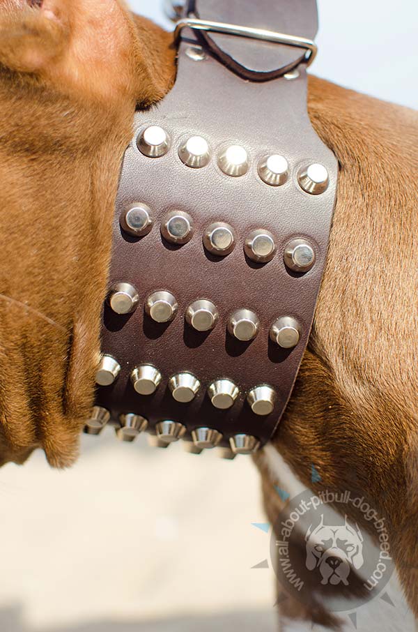 Pyramid Studs on Leather Dog Collar for Pitbull General "Woof" Collar Tip: We only use best leather when make our dog high quality collarsWe offer Pyramid Studs on Leather Dog Collar for Pitbull