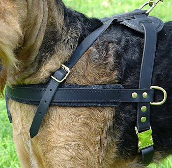 Professional full leather pulling/tracking harness. This is another truly beautiful piece of hand made working dog equipment! One of the best available harnesses. The pulling / tracking harness is some of the most functional and handsome on the market today. Made for pulling and tracking harness is built for strength, comfort and safety.